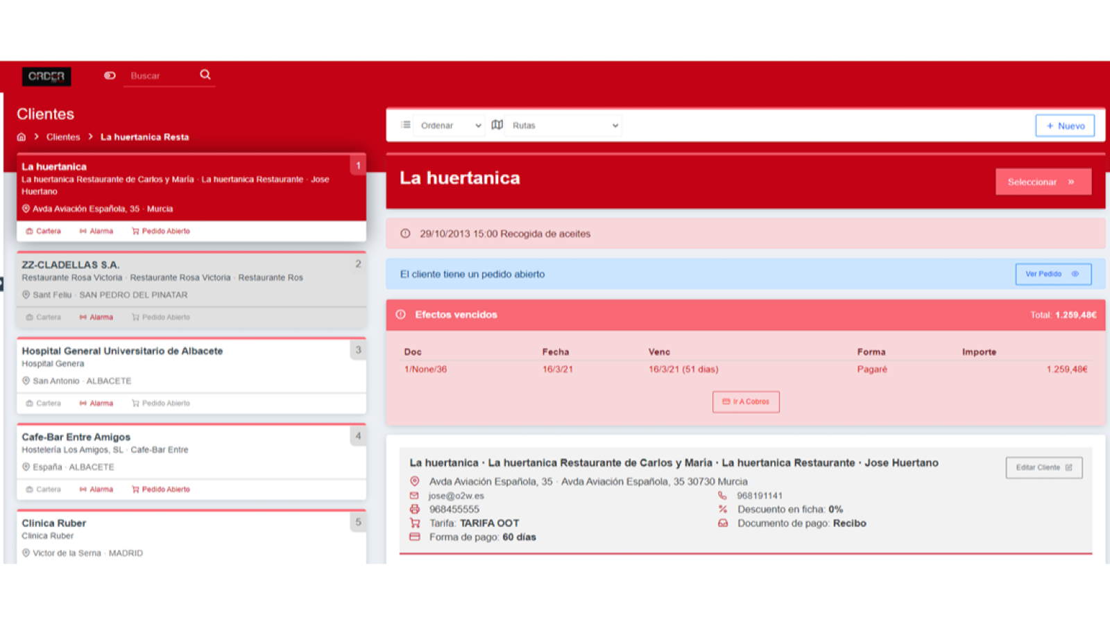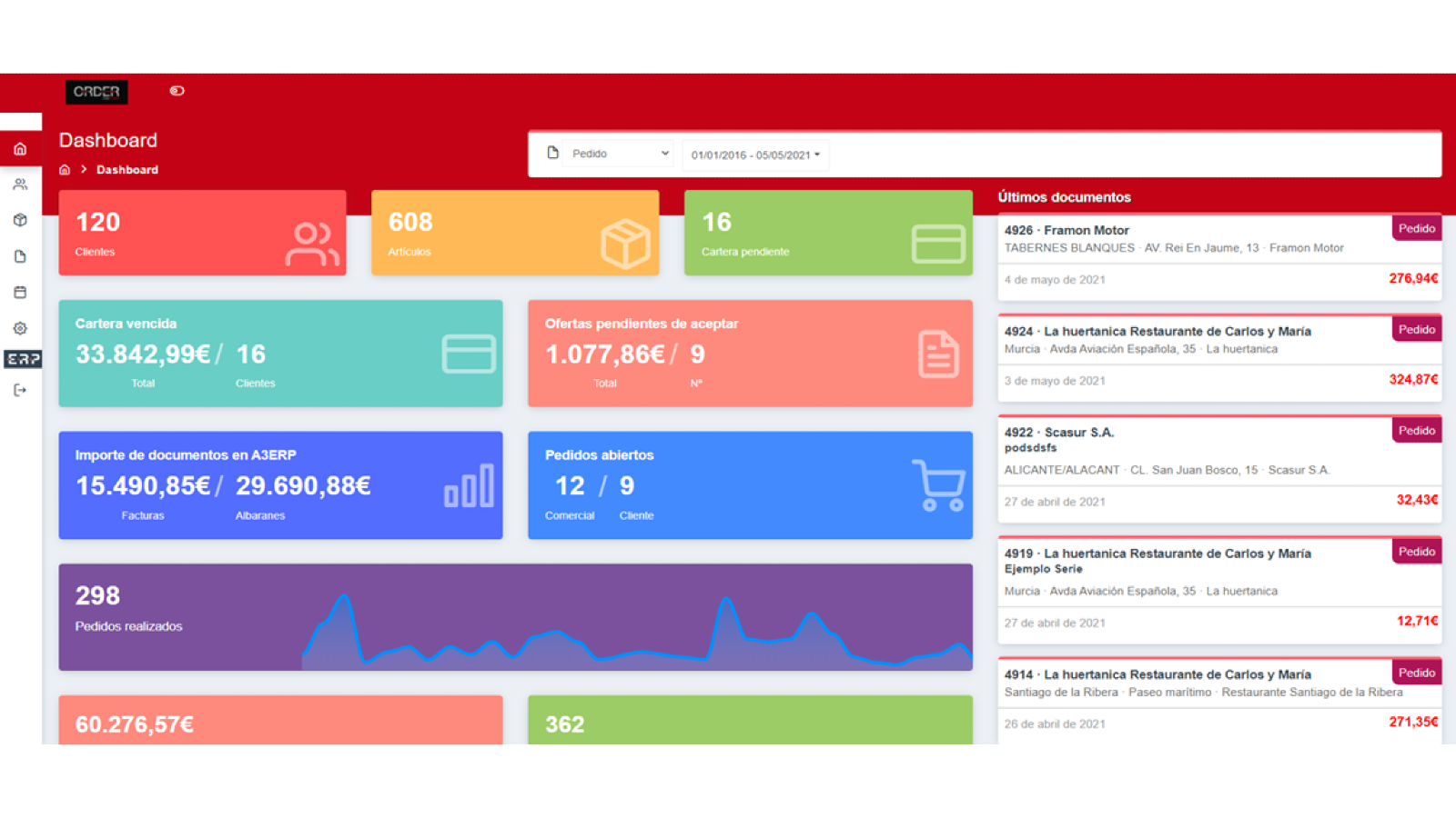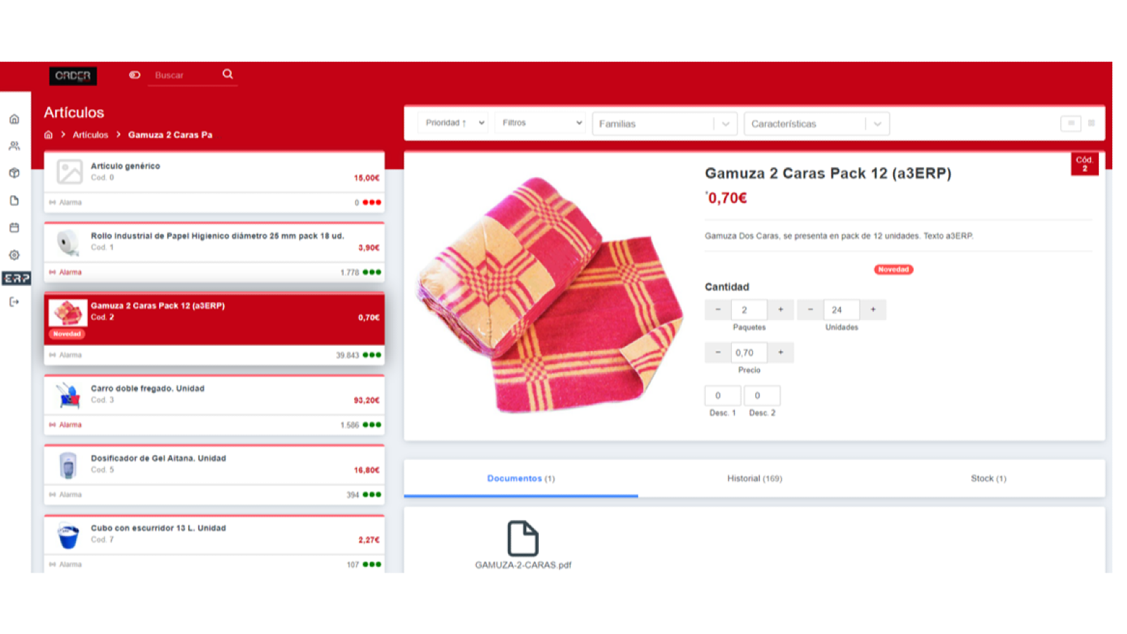 Permite consultar desde el dispositivo todo el historial de un cliente en a3ERP, ofertas, pedidos, albaranes, facturas. -