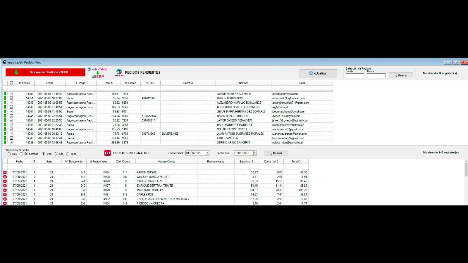 Integración total del pedido, gestión direcciones, selección de estados de pedidos a importar, actualización estados de pedido, gestión de vales. -
